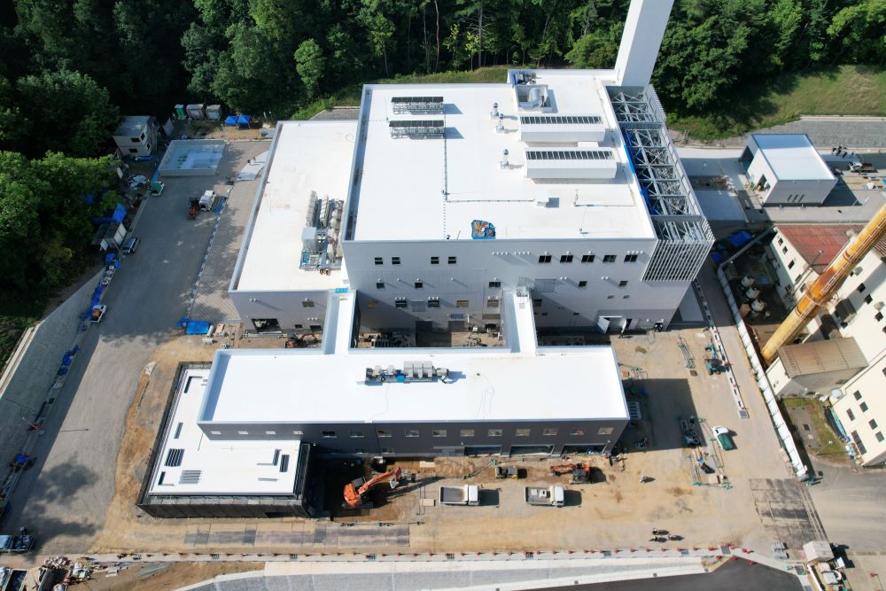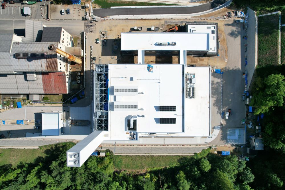 工場棟・管理棟・計量棟は内装工事等仕上げ作業を継続して進めています。外構工事は現場内全域でロードヒーティング等の上層工事を進めています。プラント工事は試運転準備中です。今後は9月末までに内装・外構工事を完了させ、施設として完成する見込みです。また、9月より本格的に試運転作業が開始し、10月・11月の燃焼運転開始に向け進捗していきます。