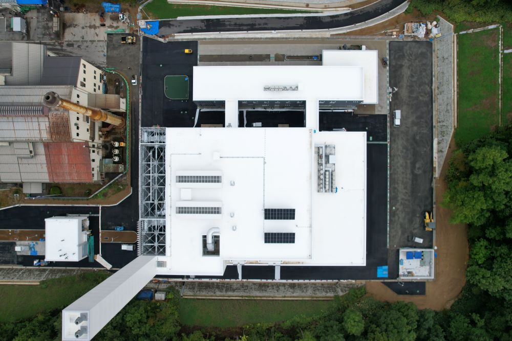 工場棟・管理棟・計量棟は内装工事等も完了し、外構工事はアスファルト舗装工事を残すのみとなっています。プラント工事は試運転作業を継続しており、ほぼすべての機械の単独運転を終えています。今後は10月から焼却炉に火が入り、11月のごみ投入に向け燃焼運転の準備作業を始めています。